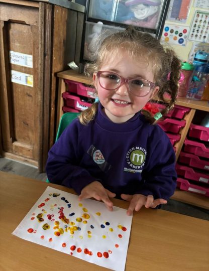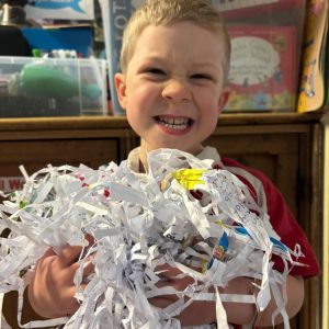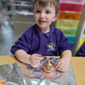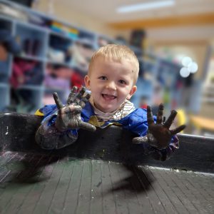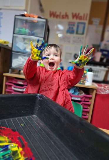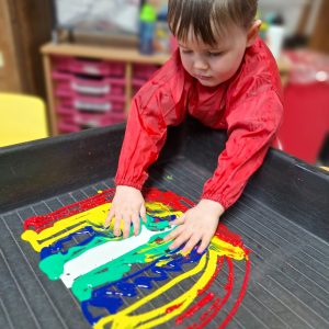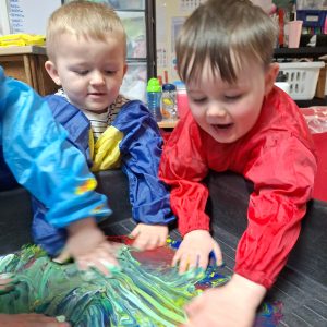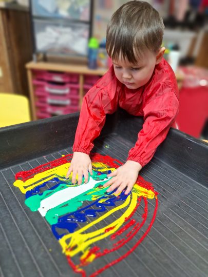 Messy play is an important part of our daily routine, children play in jelly, water, pasta, shredded paper, bubbles and much, much more – they have lots of fun getting very messy!
